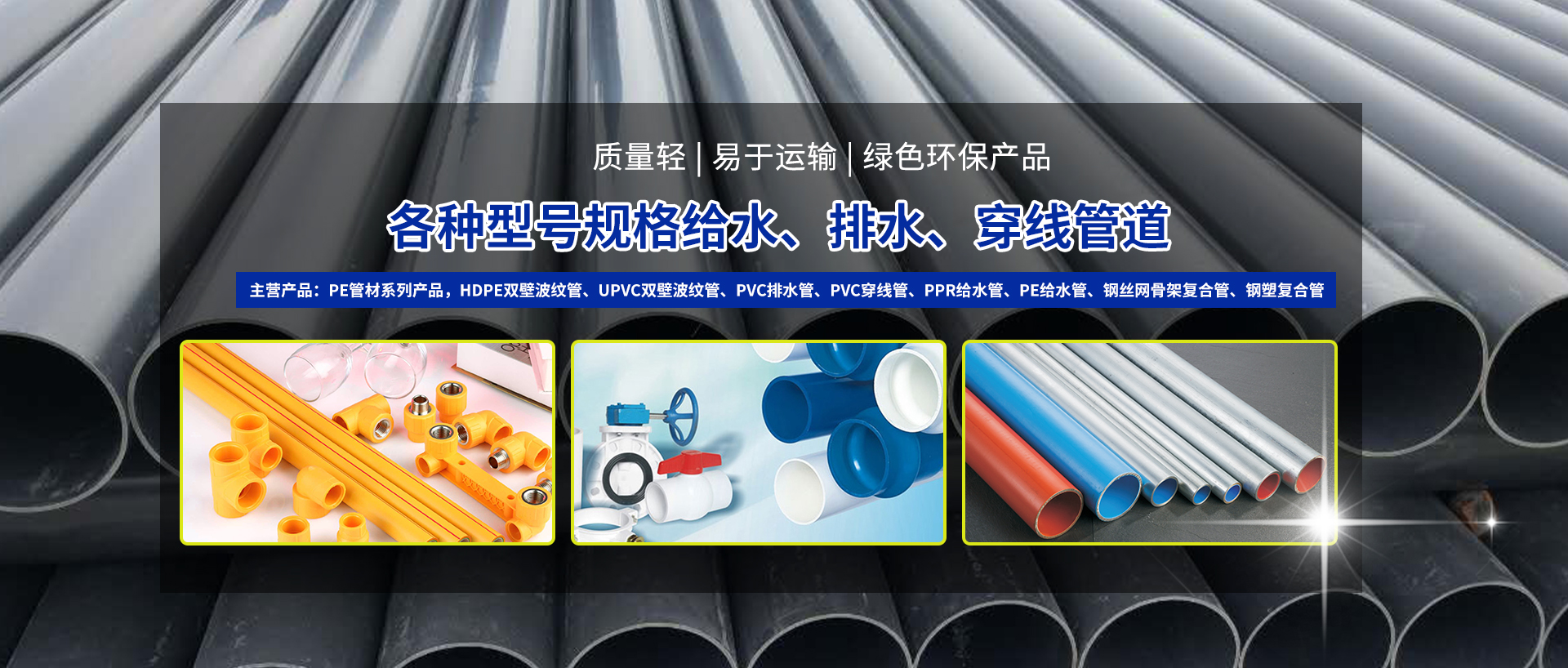 達(dá)州市川禾商貿(mào)有限公司是一家專(zhuān)業(yè)從事銷(xiāo)售各種型號(hào)規(guī)格的給水、排水、穿線(xiàn)管道等市政工程管道的公司, 聯(lián)塑管道達(dá)州市總代理商. 主營(yíng)產(chǎn)品:PE管材系列產(chǎn)品,HDPE雙壁波紋管、UPVC雙壁波紋管、PVC排水管、PVC穿線(xiàn)管、PPR給水管、PE給水管、鋼絲網(wǎng)骨架復(fù)合管、鋼塑復(fù)合管。 多年來(lái),我公司一直秉承以客戶(hù)需求為核心,在專(zhuān)注達(dá)州市場(chǎng)的同時(shí),不段開(kāi)拓周邊市場(chǎng),在達(dá)州設(shè)立倉(cāng)儲(chǔ)點(diǎn),為廣大經(jīng)銷(xiāo)商及客戶(hù)提供服務(wù)。我們用心的服務(wù)贏(yíng)得了多家經(jīng)銷(xiāo)商和客戶(hù)的信賴(lài)和好評(píng),在達(dá)州地區(qū)逐漸樹(shù)立起公司良好的...