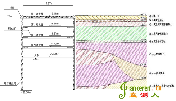 基坑工程的監(jiān)測方案設計應綜合分析工程地質條件、基坑維護工作性狀和周圍環(huán)境的基礎上作出,應具針對性